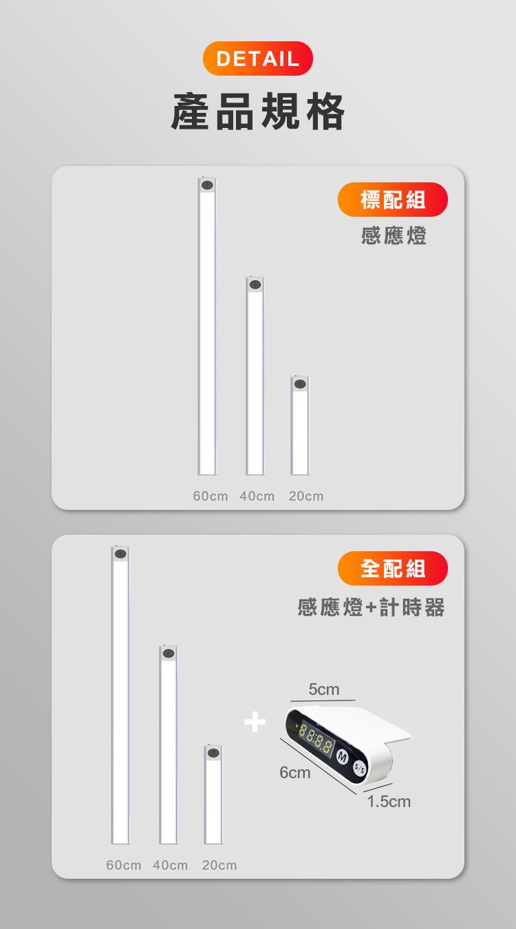 內容物:智能手掃燈20cmx1、USB充電線x1、含背膠磁吸鐵片x1
