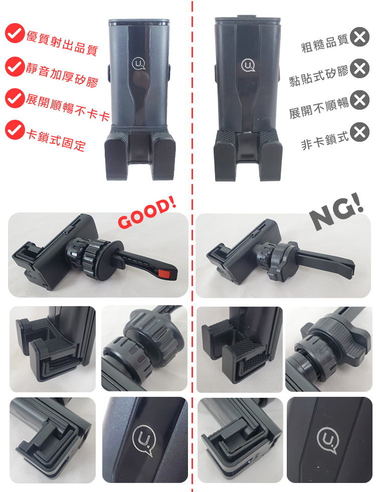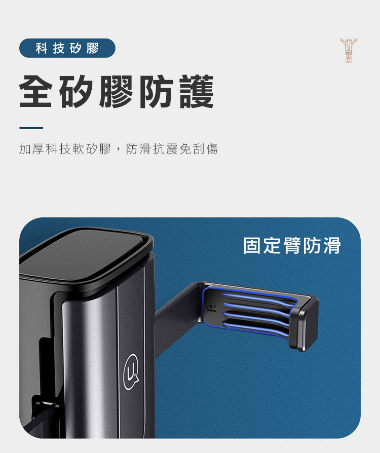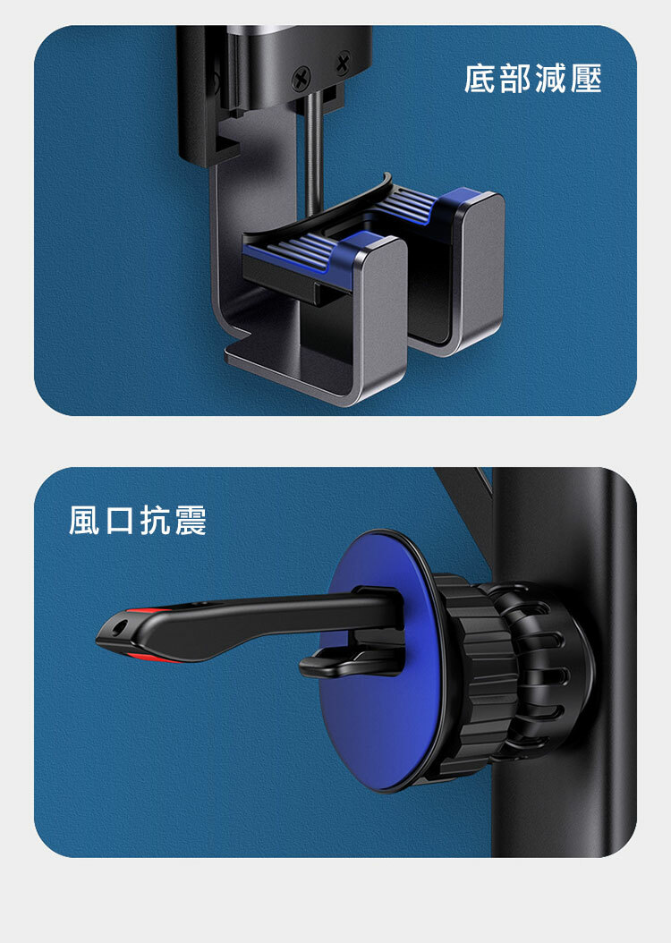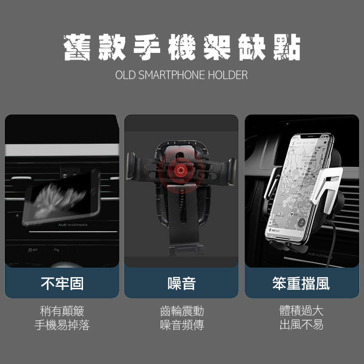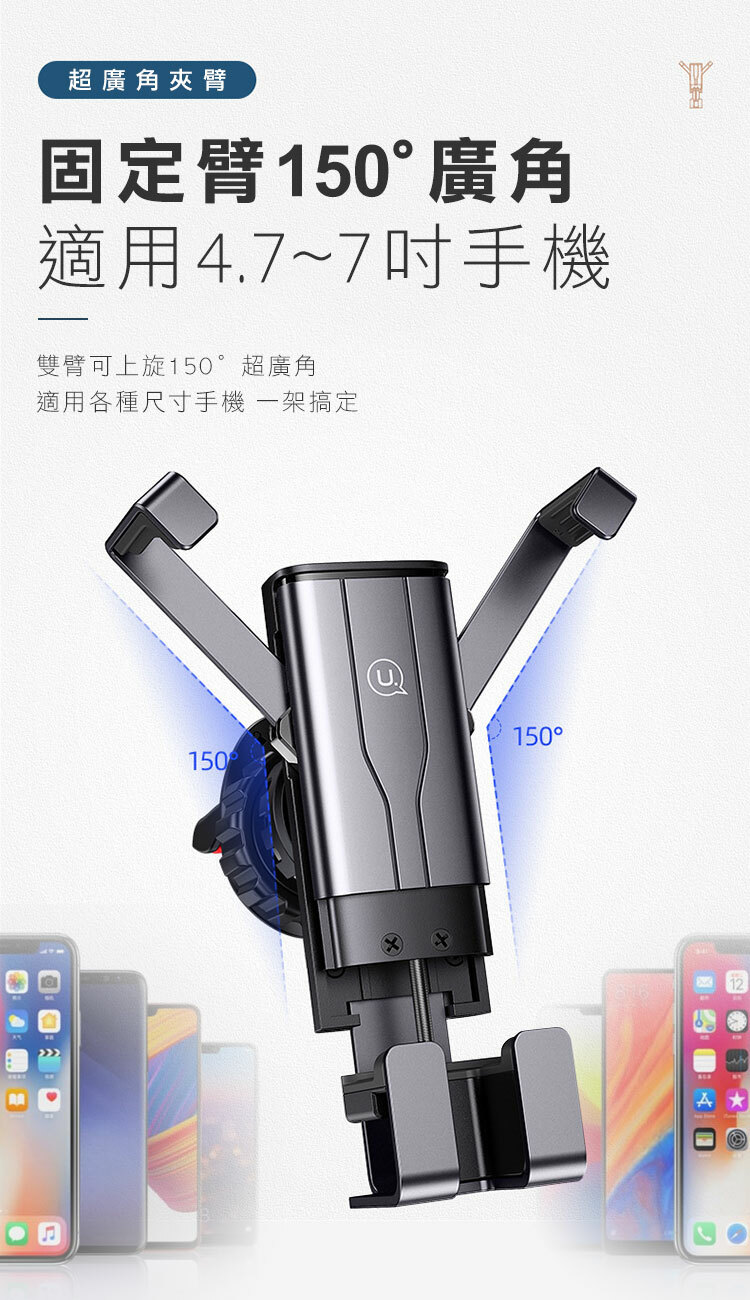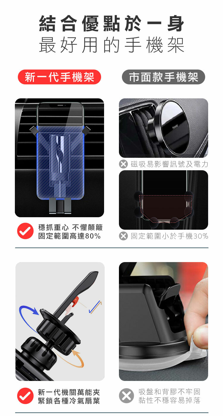 市面上有各式各樣的車用手機支架,有的不牢固易摔傷寶貴的手機,有的體積太大,擋住出風口阻擋風量,來試試新款的鎖定式穩固重力手機架。體積小,收合面積僅33x80mm,機械特殊結構,重力鎖緊完美固定。超廣角夾臂 適用市售4.7~7吋手機。360萬向旋轉球 輕鬆調整固定。創新機關萬能夾穩穩鎖定出風口葉片 安全不鬆落。預留充電空間 充電更便利。輕巧實用行車必備款~快來試試吧!