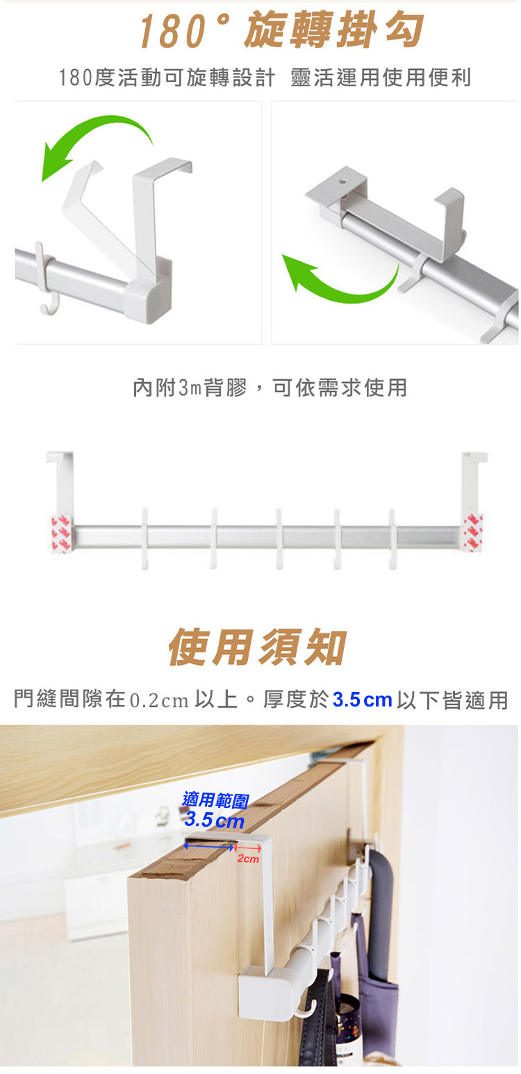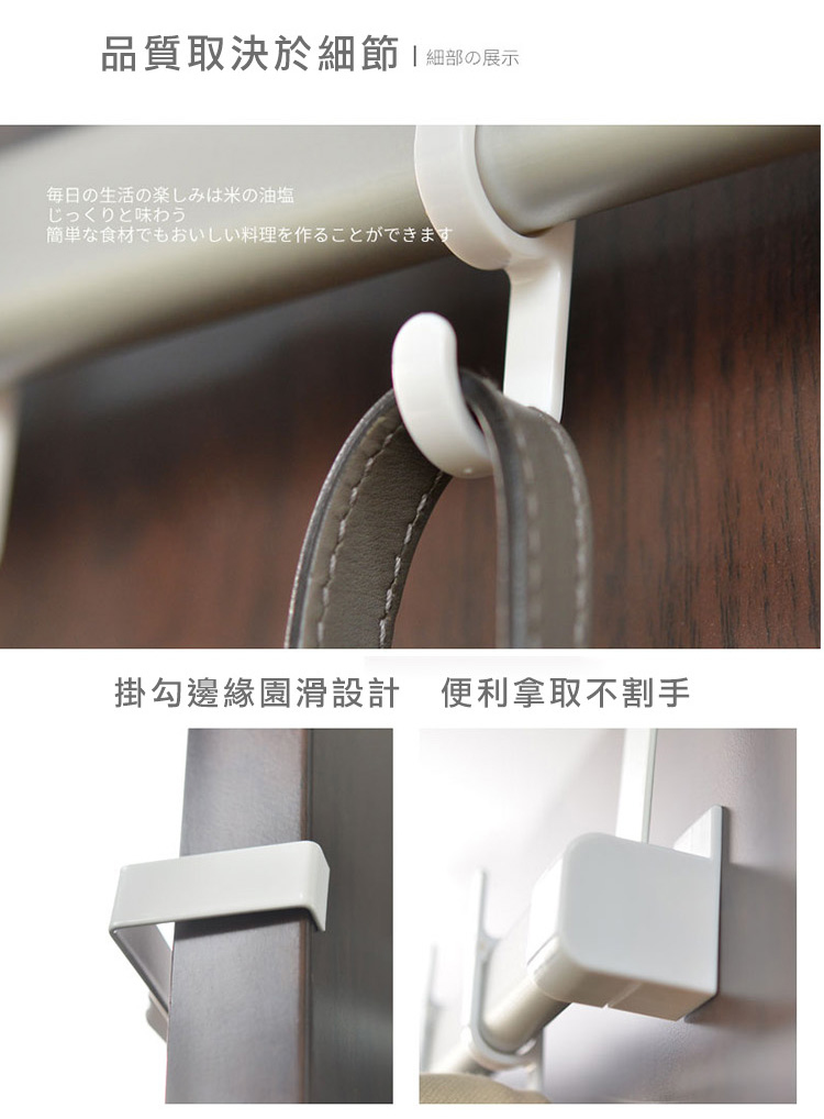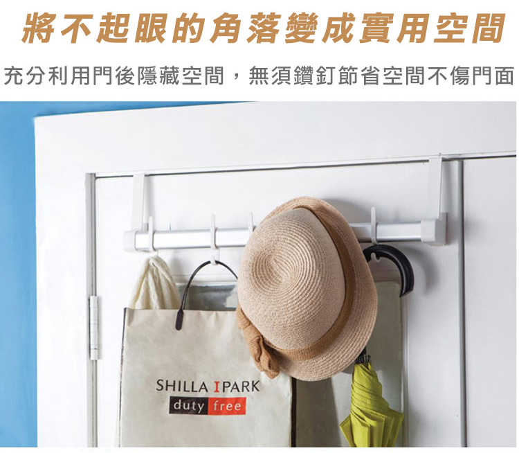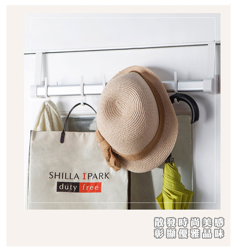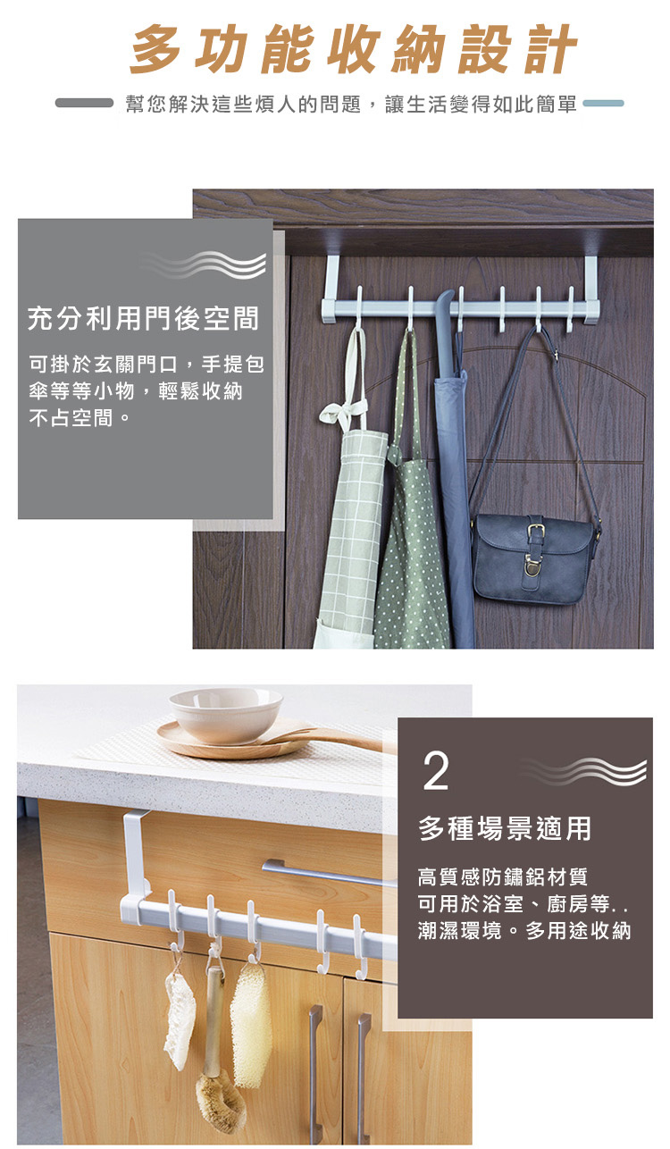 新式防鏽鋁穩固活動門後勾,不怕潮濕環境,防鏽又輕盈,耐重又耐用,一掛就上免安裝,可活動調整間距,不怕空間浪費掉,獨特上下雙勾設計,收納再晉級,沒有比它更強的門後勾了!